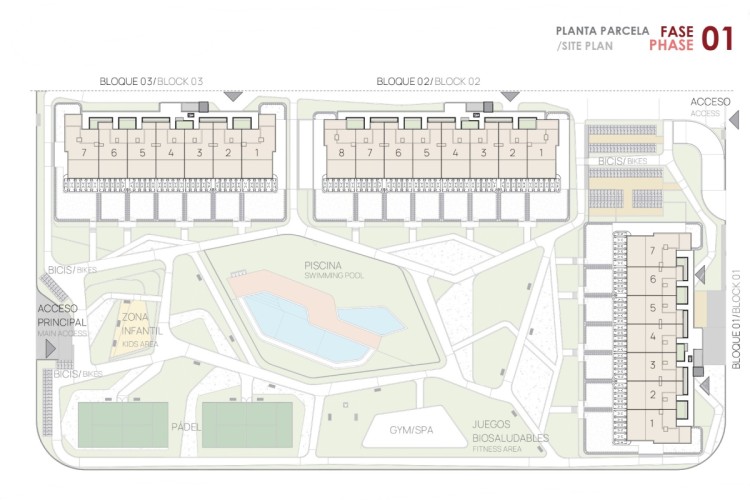 Komplex tvoří 172 apartmánů rozdělených do 6 budov s přízemím a třemi patry, doplněných o dvě podzemní podlaží s garážemi a skladovacími prostory, které jsou již zahrnuty v ceně.